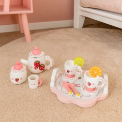 Atraskite arbatos vakarėlio žavesį su mediniu ECOTOYS rinkiniu, įkvėptu mielo braškių motyvo. Rinkinys realistiškai atkuria tikrą serviravimą – nuo arbatinuko ir cukrinės iki citrinos bei apelsino griežinėlių. Visos dalys pagamintos iš kokybiškos medienos, turi suapvalintus kraštus ir patogiai laikosi vaiko rankytėse.