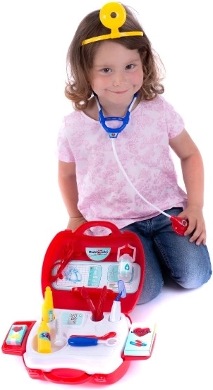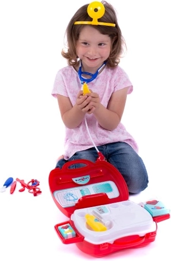 Smagus gydytojo rinkinys mažiesiems medikams patogiame lagaminėlyje suteikia viską, ko reikia žaidimams „gydytojas“. Skatina vaikų vaizduotę, vaidmenų žaidimus ir smulkiąją motoriką. Lengvų plastikinių įrankių, tokių kaip stetoskopas, termometras ar švirkštas, dėka vaikai saugiai išbandys gydymą ir paciento priežiūrą.