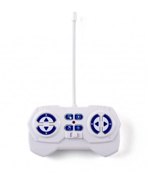 Ergonomiškas pultelis su aiškiais mygtukais leidžia valdyti judėjimą, garsus ir specialias roboto funkcijas.