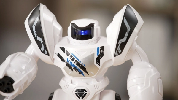 Robotas šaudo šovinius, o veiksmą papildo įspūdingas LED veidas ir garso efektai dar didesniam smagumui.