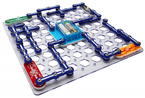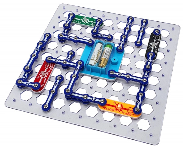 Spalvomis išskirtos detalės ir aiškus tinklelis leidžia intuityviai dėlioti elektrines grandines – idealiai tinka vaikams nuo 8 metų ir suaugusiesiems.