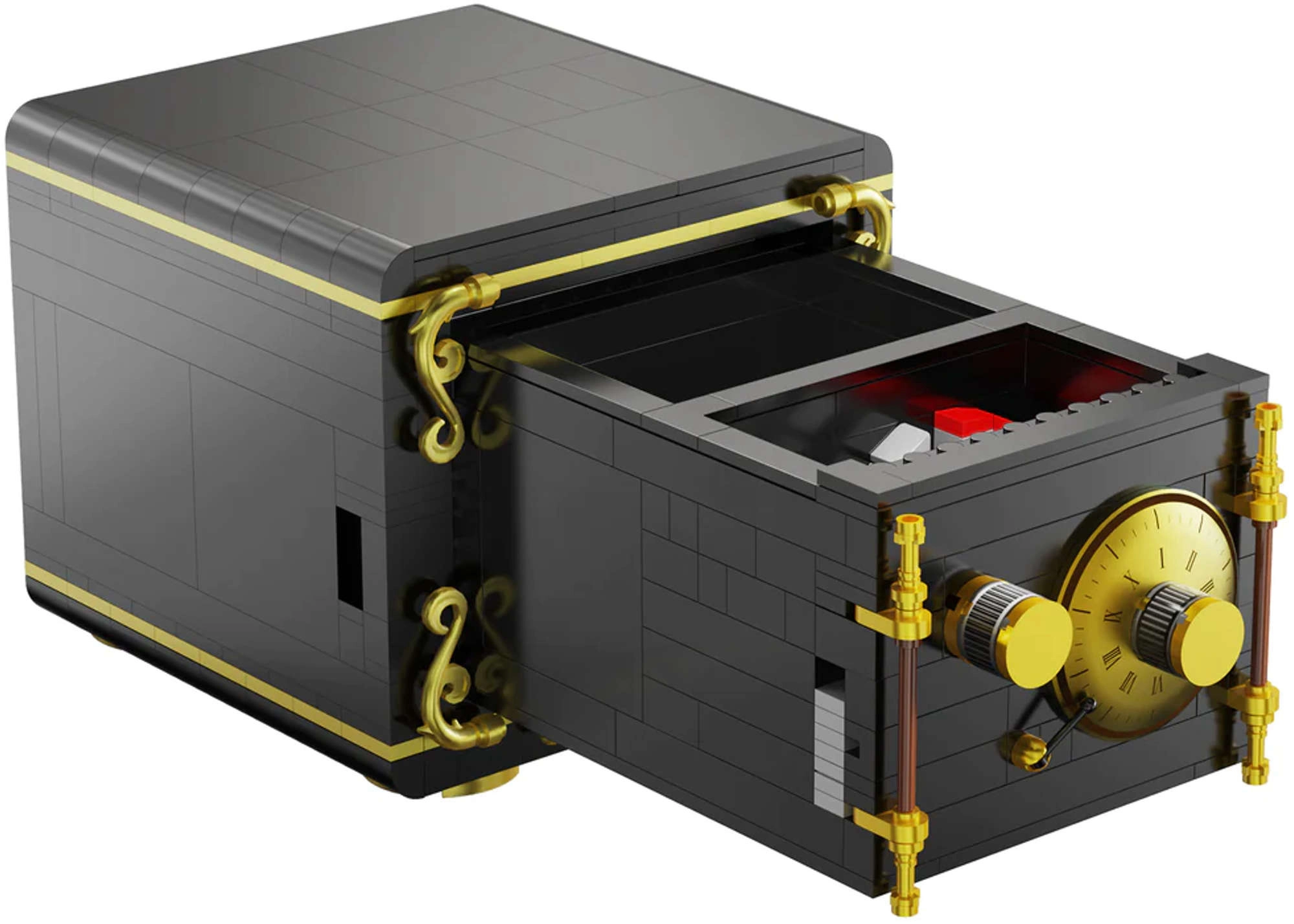 Seifas juodos spalvos su auksiniais akcentais, pagrindinis valdiklis su romėniškais skaitmenimis palengvina kodo nustatymą, o autentiškas spragtelėjimo garsas sukant ratuką sustiprina tikroviškumą. Konstruktorius lavina akių ir rankų koordinaciją, kūrybiškumą ir kantrybę, o dėl suderinamų detalių jį lengvai praplėsite kitais modeliais.
