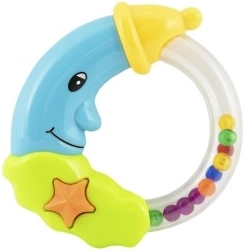 Mielas mėnulio formos barškutis pradžiugins kiekvieną kūdikį nuo pat gimimo. Dėl lengvos plastikinės konstrukcijos jį lengva laikyti, o judinant skleidžia malonius garsus, kurie skatina jutimus ir ramina. Lengvas plastikas, malonus garsas, dvi spalvinės versijos, tinka nuo 0 mėnesių.