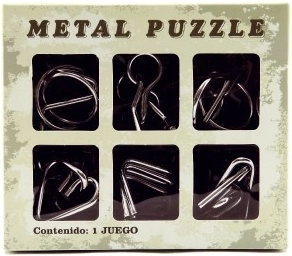 Atraskite linksmus ir išmanius metalinius galvosūkius patogiame 6 vnt. rinkinyje, kurie nemenkai pamankštins ir galvą, ir rankas. Jie lavina kantrybę, smulkiąją motoriką ir atmintį. Puikiai tinka dovanai ir kelionėms, supakuota į kompaktišką dėžutę.