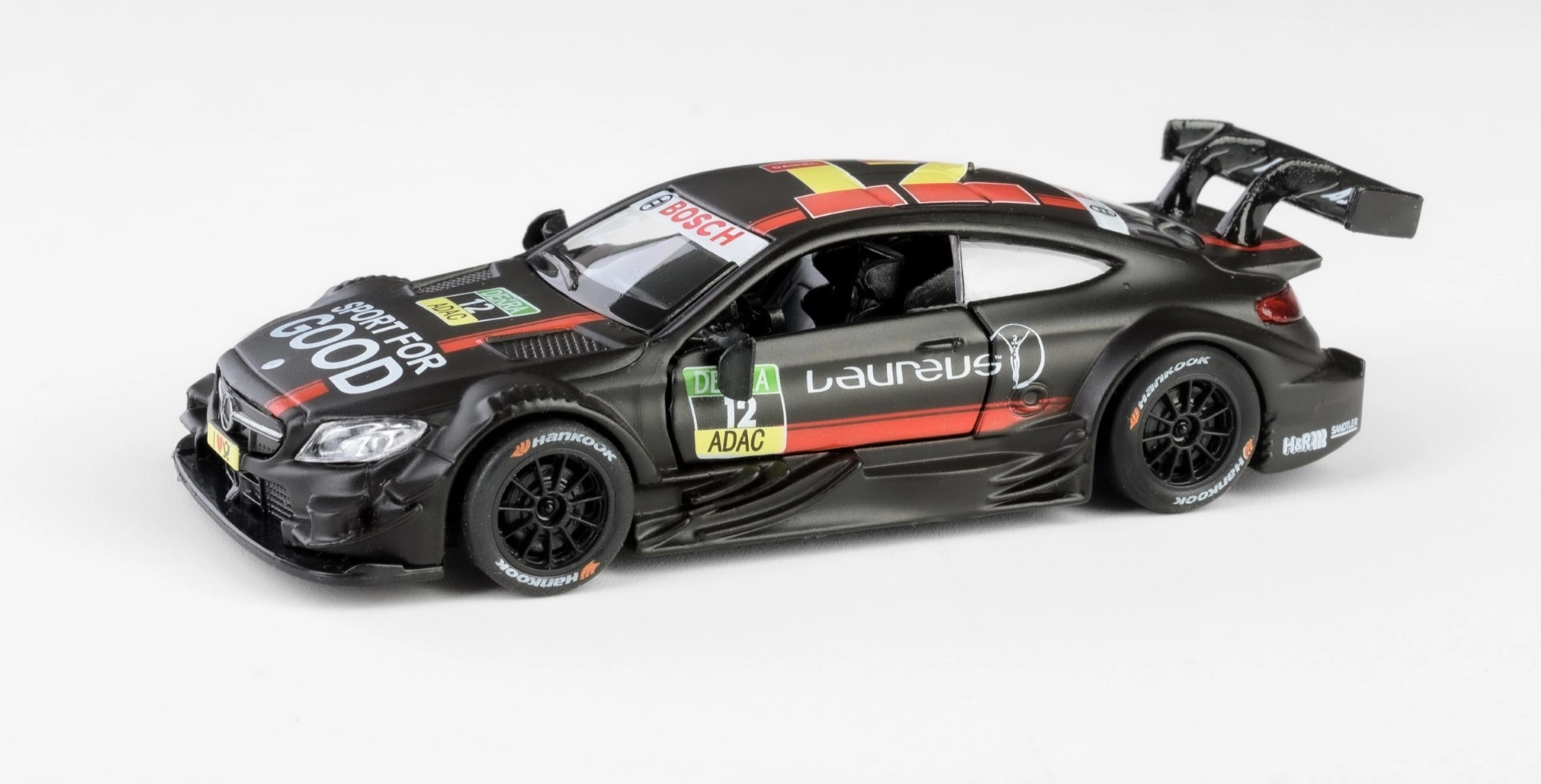 Preciziškai pagamintas MERCEDES-AMG C 63 DTM automobilio modelis masteliu 1:43 pradžiugins kolekcionierius ir mažus entuziastus. Siūlo detalią apdailą, atidaromas šonines duris, pull-back pavarą važiavimui į priekį ir guminės padangas realistiškesnei išvaizdai. Patvari metalo ir plastiko kombinacija užtikrina ilgaamžiškumą, o saugumą patvirtina CE sertifikatas.