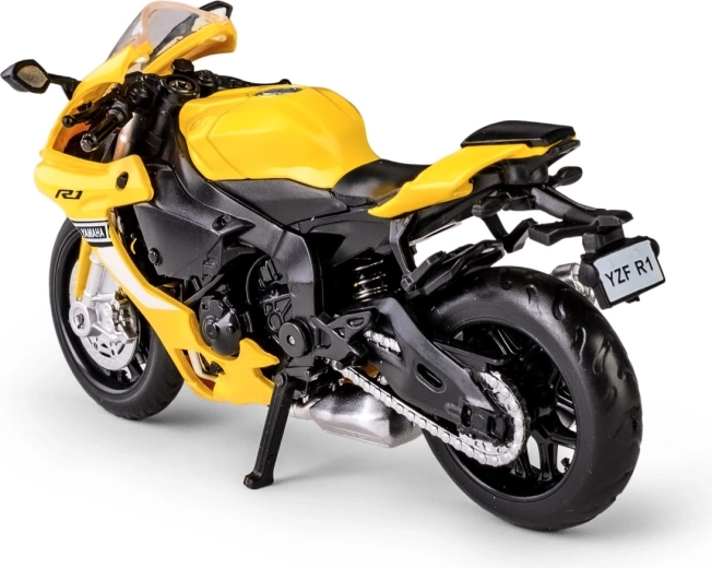 Detalus kolekcinis motociklo Yamaha YZF‑R1 modelis masteliu 1:18 pradžiugins ir vaikus, ir suaugusiuosius. Metalinis korpusas su plastikiniais priedais užtikrina patvarumą, guminės padangos pabrėžia realistišką išvaizdą, o tokios funkcijos kaip važiuojantys ratai, judanti vairalazdė ir išskleidžiamas šoninis stovas daro šį modelį puikiu eksponatu vitrinai ir žaidimams.