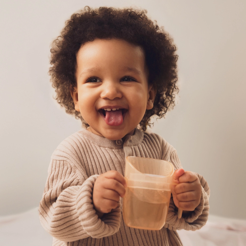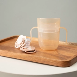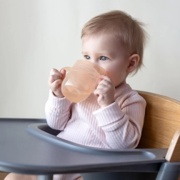 Lengva konstrukcija, profiliuotos dvigubos rankenėlės ir mažesnė pradinė talpa (apie 130 ml su įdėklu) palengvina perėjimą nuo buteliuko. Kai vaikas pasirengęs, įdėklą tiesiog išimkite ir turėsite atvirą 150 ml puodelį – vienas gaminys iš tiesų auga kartu su vaiku.