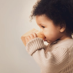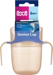 Mokomasis puodelis LOVI Genius Nude sukurtas bendradarbiaujant su neurologopedais, kad vaikas saugiai treniruotųsi gerti kaip iš atviro puodelio. Viduje esantis įdėklas lėtina skysčio tekėjimą ir mažina springimo riziką. Dėl skaidrių sienelių vaikas mato lygį, nereikia stipriai atlošti galvos, o tėvai gali stebėti išgertą kiekį.