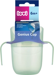 Mokomasis puodelis LOVI Genius sukurtas bendradarbiaujant su neurologopedais, kad imituotų natūralų gėrimą iš atviro puodelio, nekelia pernelyg didelio galvos atlošimo rizikos. Vidinis įdėklas sulėtina tekėjimą ir padeda išvengti išsiliejimo bei springimo. Skaidrios sienelės leidžia vaikui matyti gėrimo lygį, o tėvams – lengvai kontroliuoti išgertą kiekį.