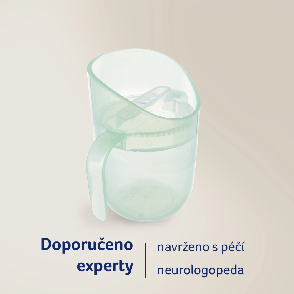 Lengva konstrukcija, dvi plačios ąselės ir kompaktiškas dydis daro jį puikiu pasirinkimu pradedantiesiems. Kai vaikas įsisavina tinkamą techniką, įdėklą paprasta išimti, o puodelis tampa atviru puodeliu, kurio talpa 150 ml – vienas produktas iš tiesų auga kartu su vaiku.