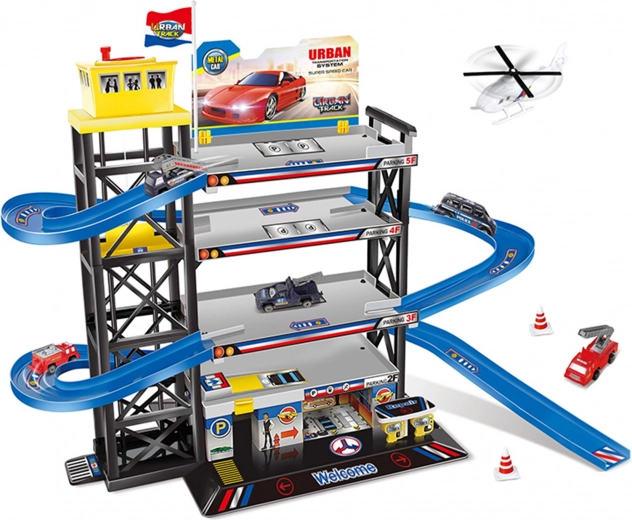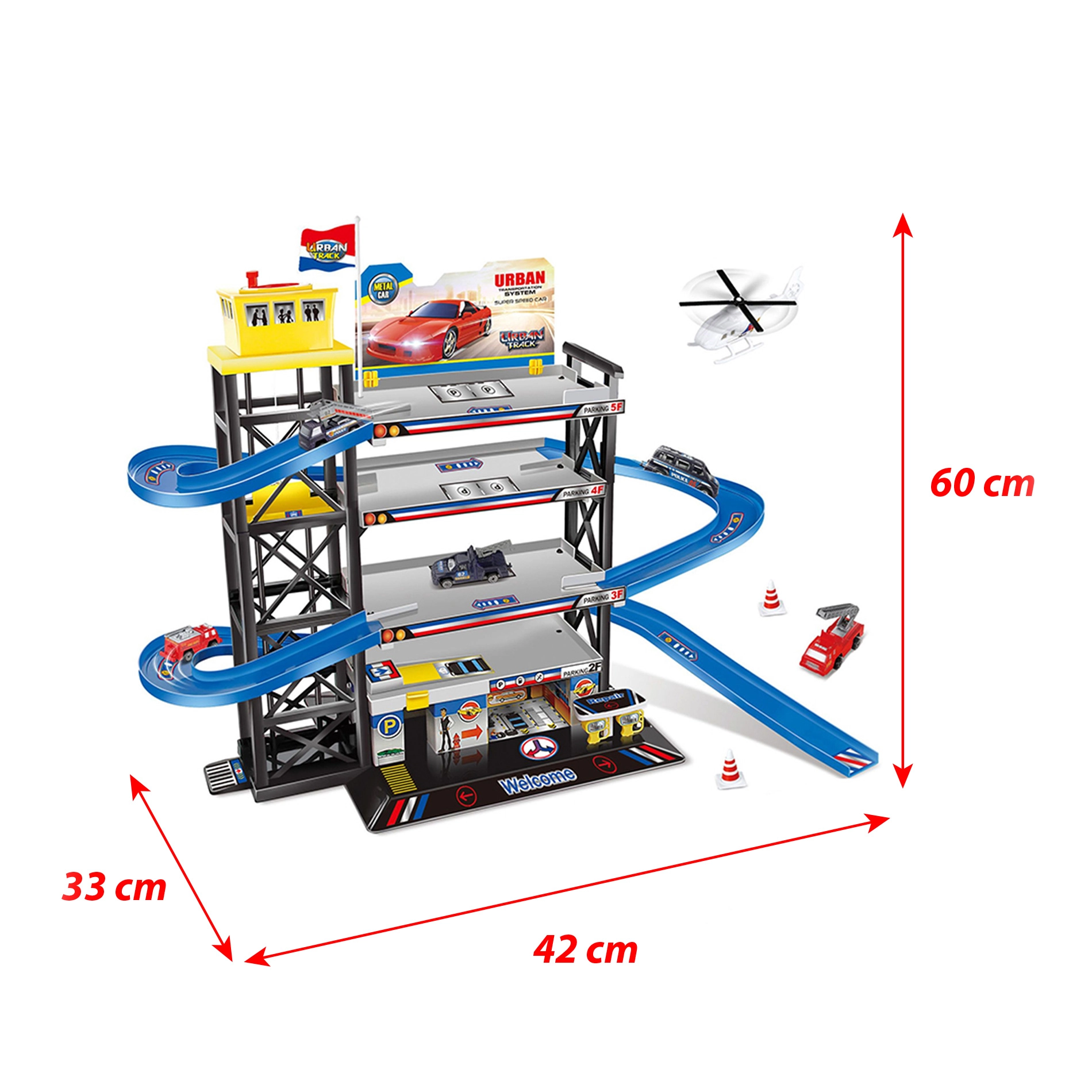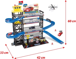 Ši didelė stovėjimo aikštelė su sraigtasparnių aikštele – puikus žaidimų centras mažiesiems vairuotojams. Keturi aukštai suteikia daug vietos parkavimui ir kūrybiškiems žaidimams, o sraigtasparnių aikštelė prideda dar daugiau pramogų. Pakuotėje rasite 3 automobiliukus ir 1 sraigtasparnį, tad galėsite važiuoti ir skraidyti iškart po surinkimo.