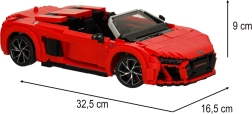 Šis detalus konstruktorius pateikia realistiškai atkurtą AUDI R8 Spyder modelį su apgalvotomis kėbulo linijomis, ratais ir kokpitu. Dėl didelio detalių skaičiaus sukursite precizišką maketą, kurio matmenys 32,5 × 16,5 × 9 cm – jis puikiai atrodys tiek lentynoje, tiek biure.