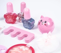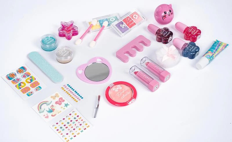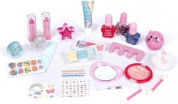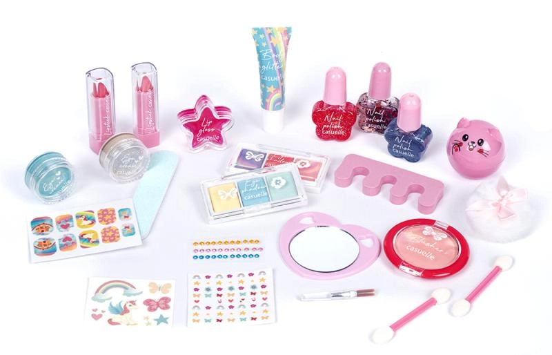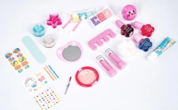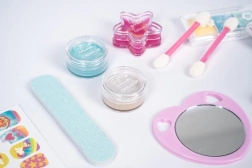 Rinkinys skatina fantaziją ir smulkiąją motoriką. Vaikai gali saugiai išbandyti pagrindinį makiažą ir manikiūrą spalvingu, draugišku pateikimu.