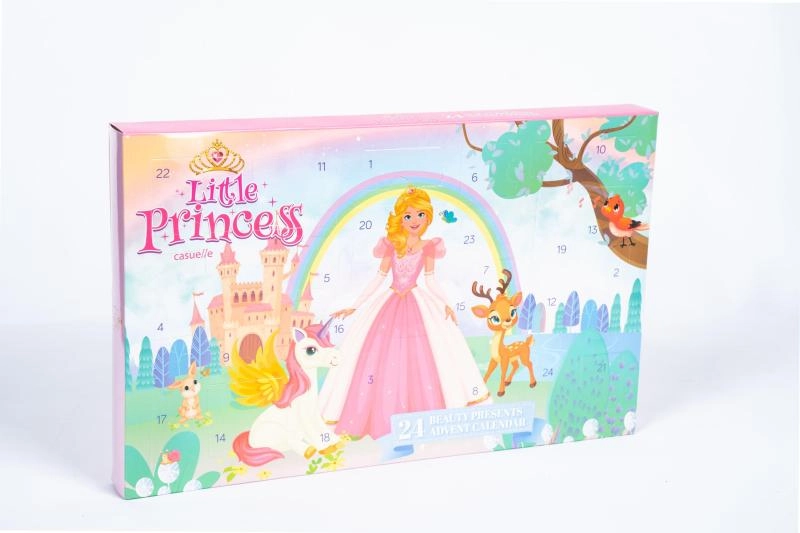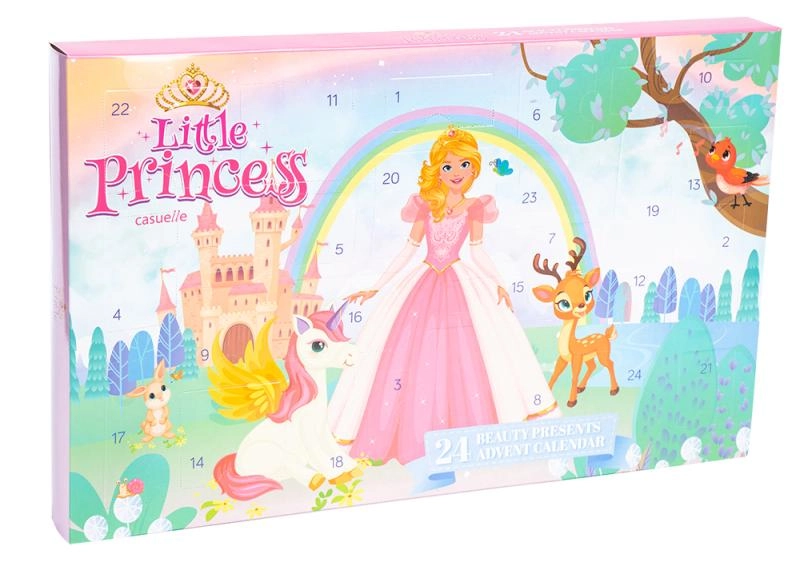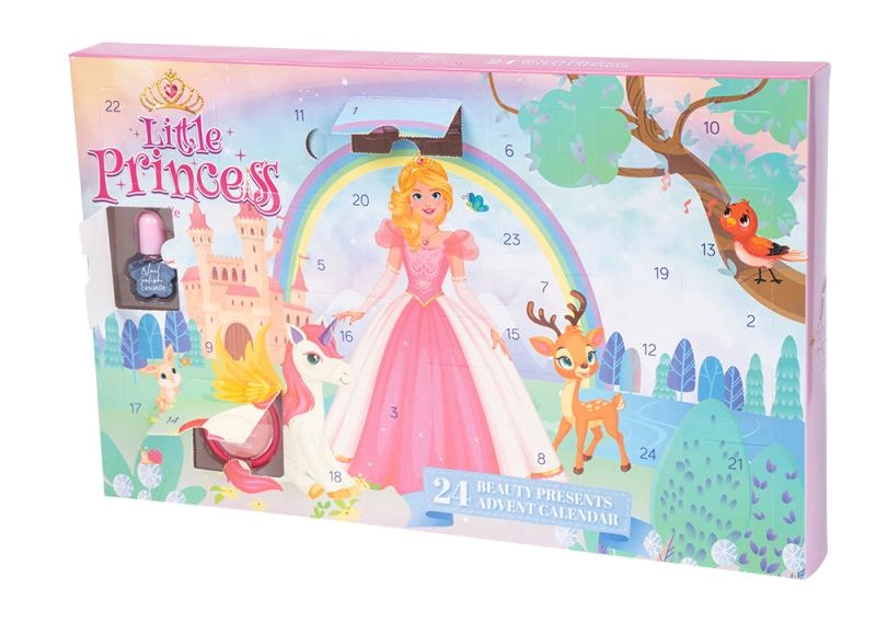 Šis Little Princess advento kosmetikos kalendorius kasdien džiugina vaikus staigmenomis – vaikiškais lūpų, akių ir nagų priežiūros produktais bei manikiūro aksesuarais. Kiekvienas iš 24 langelių slepia mažą džiaugsmo gabalėlį – nuo lūpų dažų ir blizgių iki šešėlių, skaistalų, nagų lakų, blizgučių, lipdukų ir praktiškų priemonių.