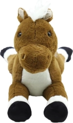Didelis 75 cm aukščio pliušinis arklys – minkštutis bičiulis žaidimams ir glaustymuisi. Pradžiugins mažus raitelius ir arklių mylėtojus savo švelnia pliuše, draugiška išvaizda ir pakankamai didele forma, tinkama patogiam apsikabinimui.