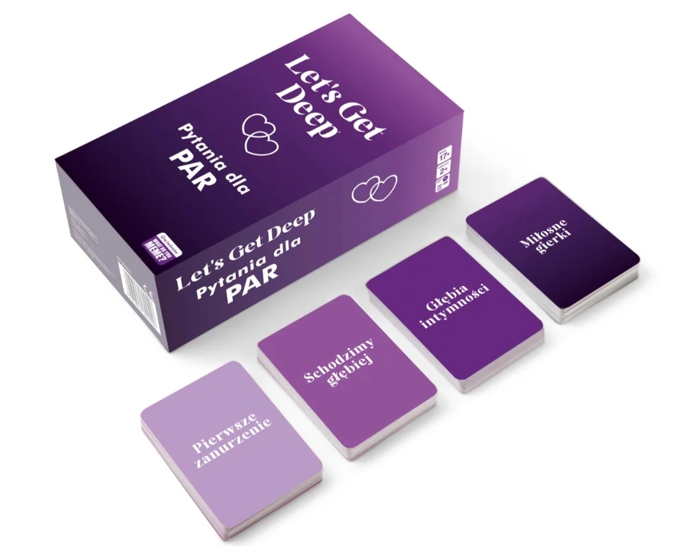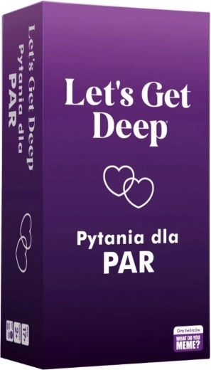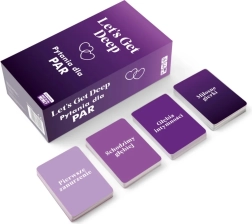 Žaidimas Let's Get Deep – puikus pasirinkimas poroms, norinčioms pagardinti bendras akimirkas ir kartu geriau vienas kitą pažinti. Kortelės suskirstytos į keturias kategorijas – Pirmas panėrimas, Neriame giliau, Intymumo gelmė ir Meilės žaidimai – kurios palaipsniui veda nuo lengvų temų prie intymesnių klausimų.