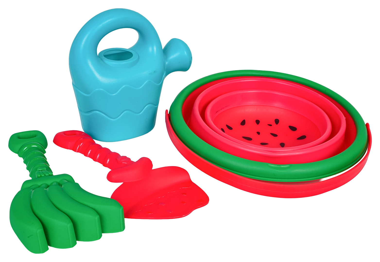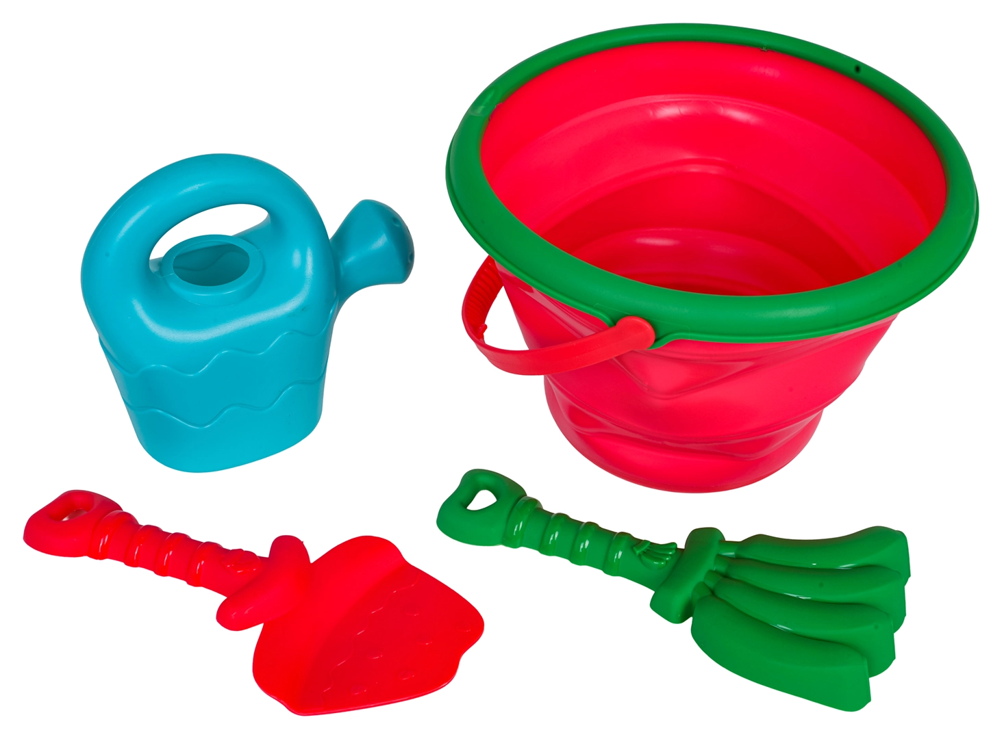 Kastuvėlis, grėbliukas ir laistytuvas leidžia vaikams kasti, grėbti, formuoti ir pilstyti vandenį – viskas viename rinkinyje.