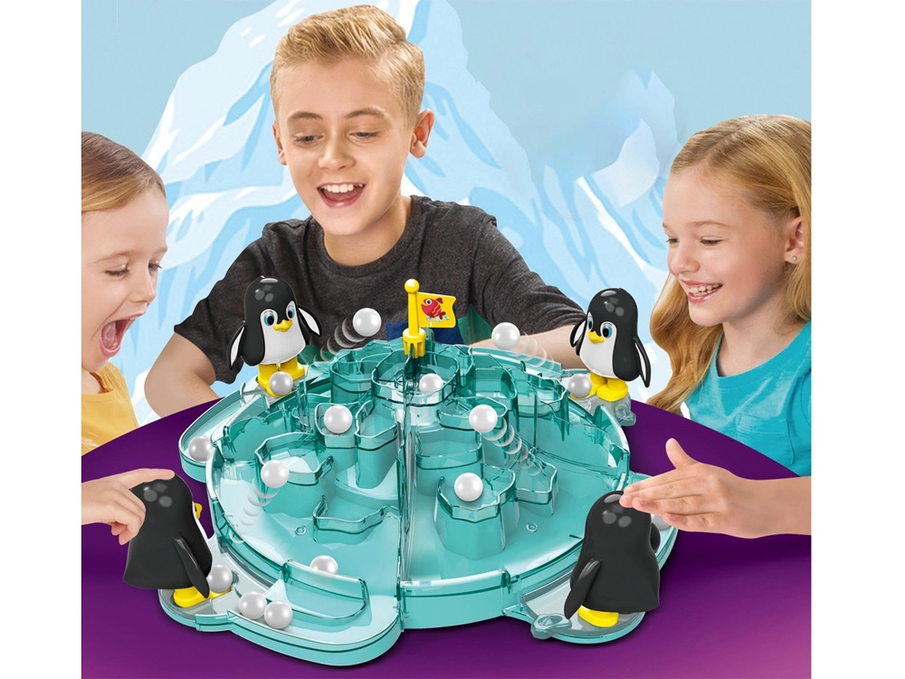 Paspausk pingvino galvą ir nusiųsk sniego kamuoliuką lediniu taku. Paprastas mechanizmas yra linksmas ir lengvai valdomas net mažesniems vaikams.