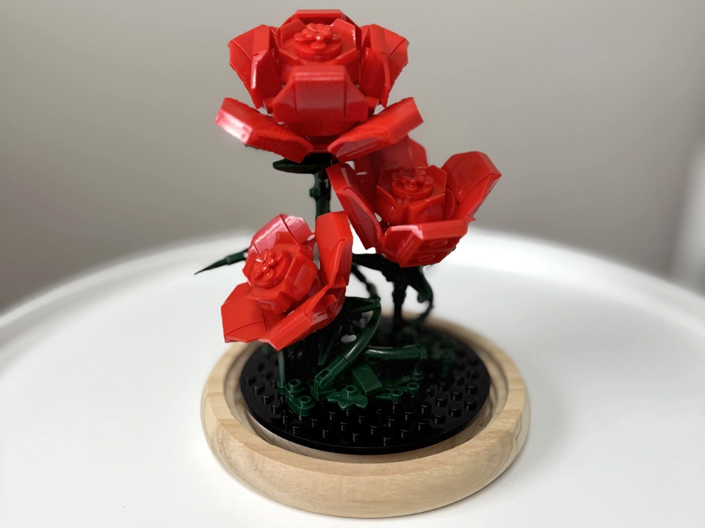 Šis dizaino statybinių kaladėlių rinkinys jungia smagų konstravimą su dekoratyviniu efektu. Rožė skaidriame kupole atrodo kaip mažas meno kūrinys, o dėl šilto LED apšvietimo ypač išryškėja vakare. Tvirtos plastikinės detalės lengvai jungiasi ir išlaiko formą, todėl baigtas modelis stabilus ir paruoštas ekspozicijai.