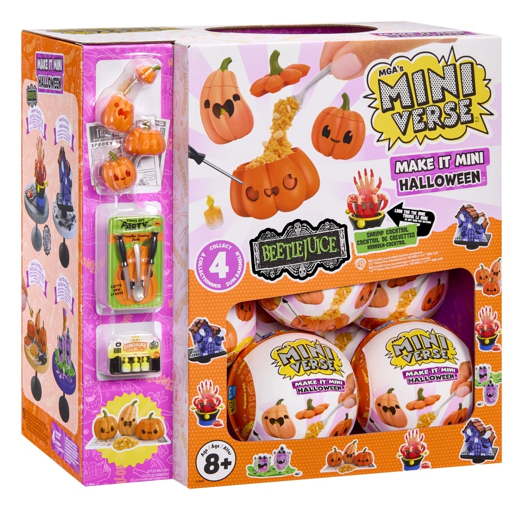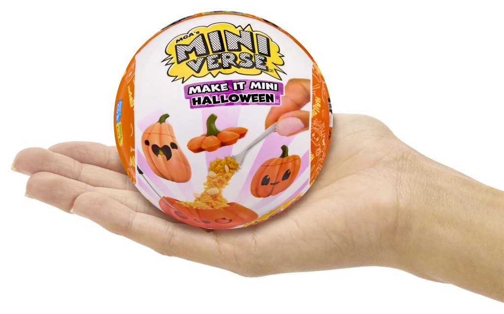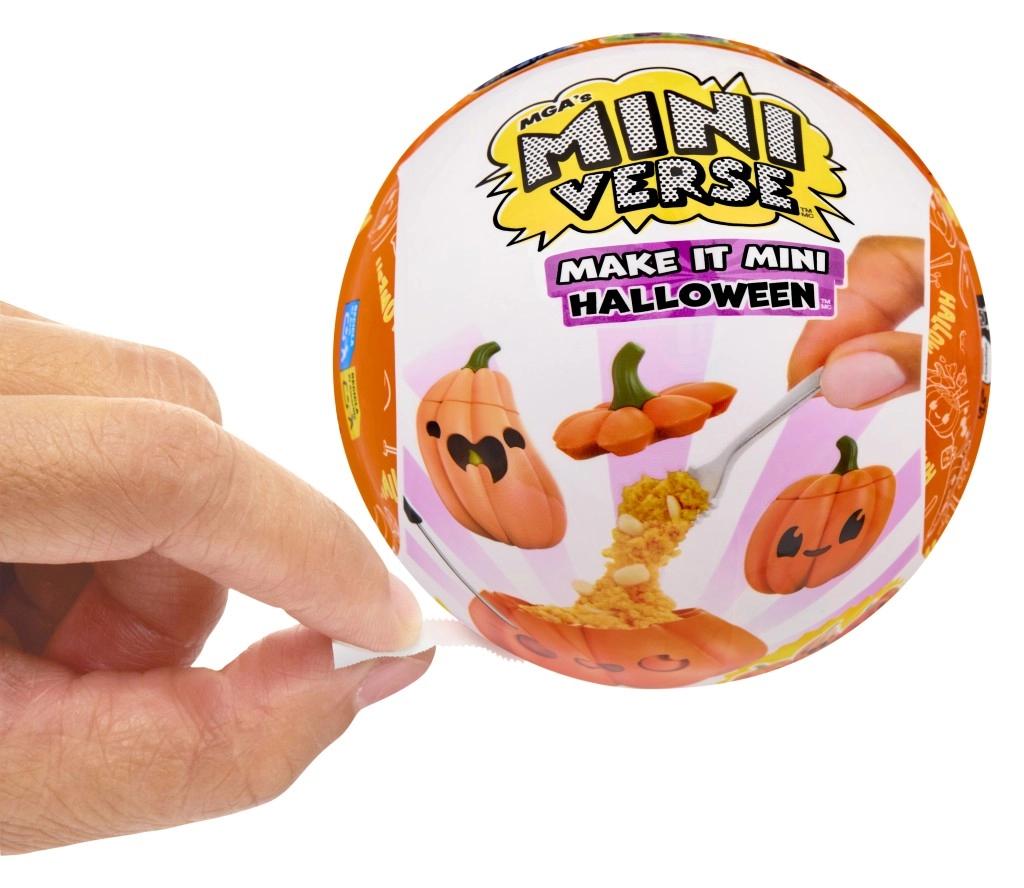 Kiekviena apvali MINI VERSE kapsulė yra užantspauduota, tad niekada nežinai, kokį bauginantį rinkinį gausi – moliūgus, gėrimus, dekoracijas ir daugiau.