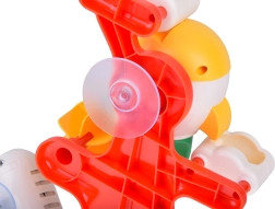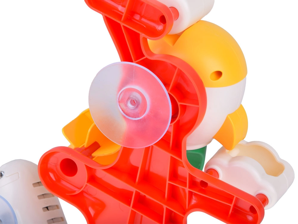 Tvirti siurbtukai stabiliai laiko žaislą ant lygių paviršių, tokių kaip plytelės ar vonia. Montavimas greitas ir nereikalauja įrankių.