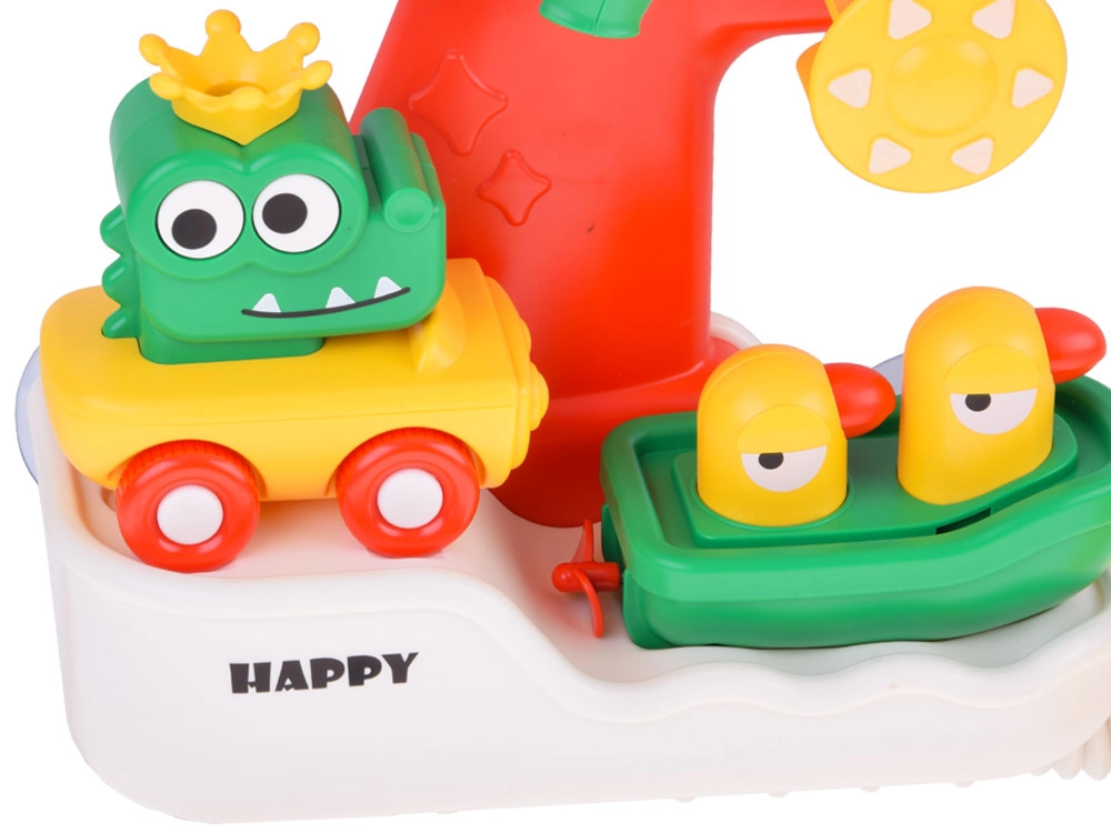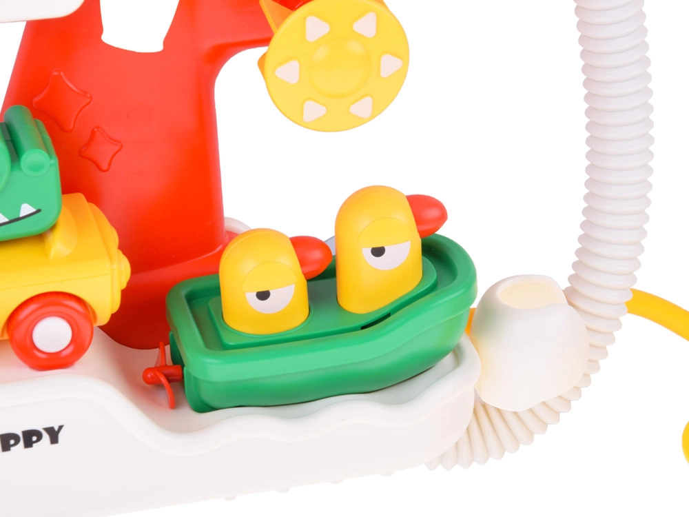 Mielas maudynių centras su krokodiliuku suteikia vaikams begalę vandens pramogų. Elektrinis siurbliukas cirkuliuoja vandenį ir sukuria nenutrūkstamo dušo efektą, kuris suka ratukus ir aktyvuoja įvairius vandens efektus. Taip pat pridedami plūduriuojantys ančiukai laivelyje, automobilis su krokodilu ir pylimo puodelis.
