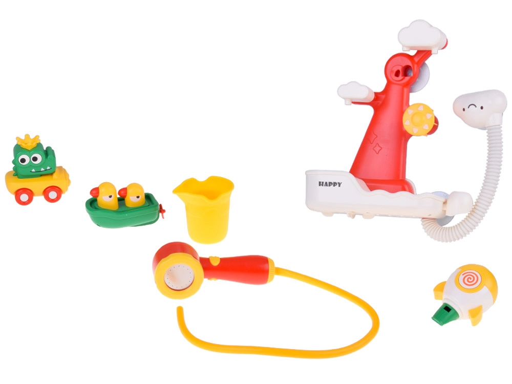 - Bazė su siurbliuku, rankinis dušelis su žarnele, krokodilas automobilyje, laivelis su 2 ančiukais, puodelis