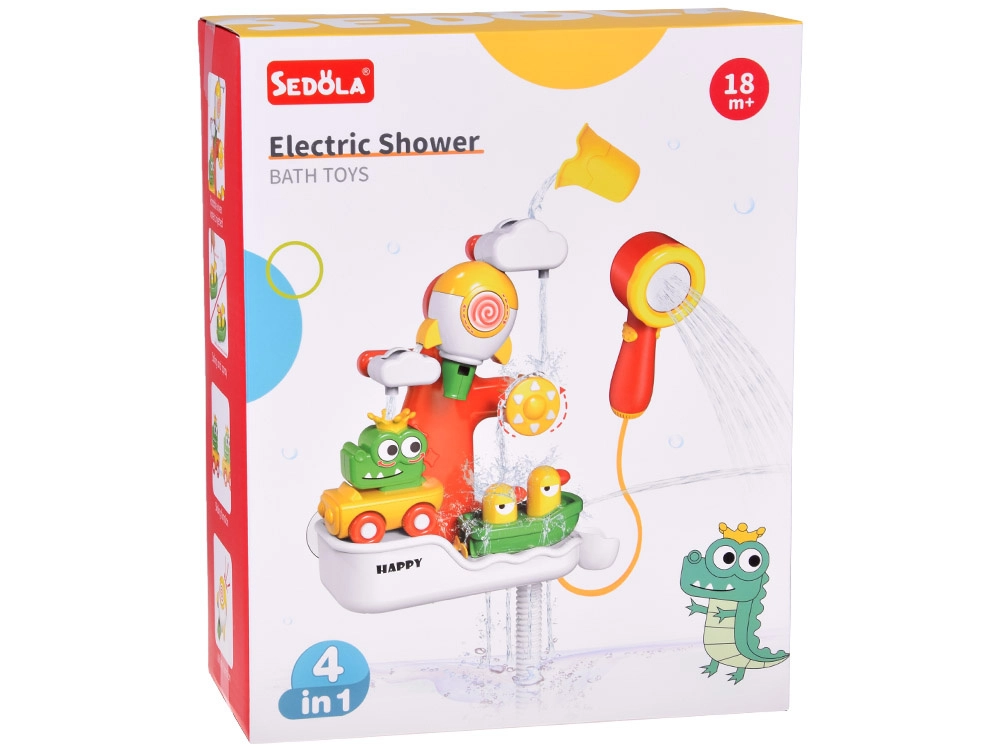 Paverskite kiekvieną vakarinį maudymąsi smagiu nuotykiu! Šis spalvingas 4‑in‑1 maudynių žaislas siūlo elektrinį dušą su uždaru vandens ciklu, besisukančius ir purškiančius elementus bei plūduriuojančius priedus. Dėl siurbtukų jį lengvai pritvirtinsite prie vonios ar plytelių, o vaikai mėgausis saugiais vandens žaidimais su krokodiliuku ir ančiukais.