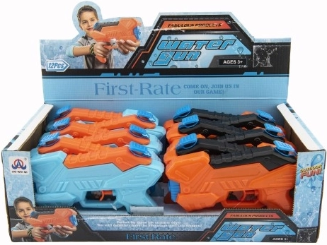 Smagus plastikinis vandens pistoletas, 19 cm ilgio, vasariškam atsigaivinimui ir žaidimams prie vandens. Paprastas pripildymas vandeniu ir lengvas purškimas užtikrina greitą veiksmą, patogų suėmimą ir daug linksmybių vaikams nuo 3 metų.