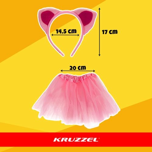 Mielas rožinis kačiuko kostiumas mergaitėms iš KRUZZEL, universalaus dydžio vaikams nuo 3 iki 10 metų. Rinkinys 4in1 apima tiulio sijonėlį, lankelį su kačiuko ausytėmis, uodegėlę ir varlytę. Lengvas poliesteris yra patogus, saugus ir nevaržo judesių – idealu karnavalui, gimtadieniui ar persirengėlių vakarėliui. Galima skalbti 30 °C ir pagaminta laikantis Europos standartų.