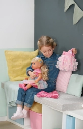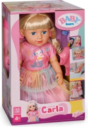 Atraskite lėlę BABY born Carla, 43 cm dydžio, su ilgais kokybiškais plaukais ir rinkiniu iš 7 kirpimo-prižiūrėjimo priedų. Ji pasižymi puikiu judrumu, gali stovėti savarankiškai, dėvi stilingą aprangą ir dėl tvirto korpuso tinka maudytis.