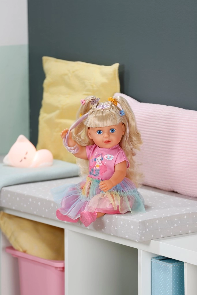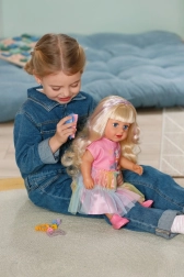 Lėlė BABY born Carla – puiki draugė kūrybiškiems žaidimams ir plaukų eksperimentams. Ilgi nailoniniai plaukai lengvai šukuojami ir formuojami, o su pridedamu šepečiu, gumytėmis ir segtukais sukursite nesuskaičiuojamą daugybę šukuosenų. Realistiška išvaizda, judrios galūnės ir galimybė stovėti savarankiškai skatina vaizduotę ir vaidmenų žaidimus.