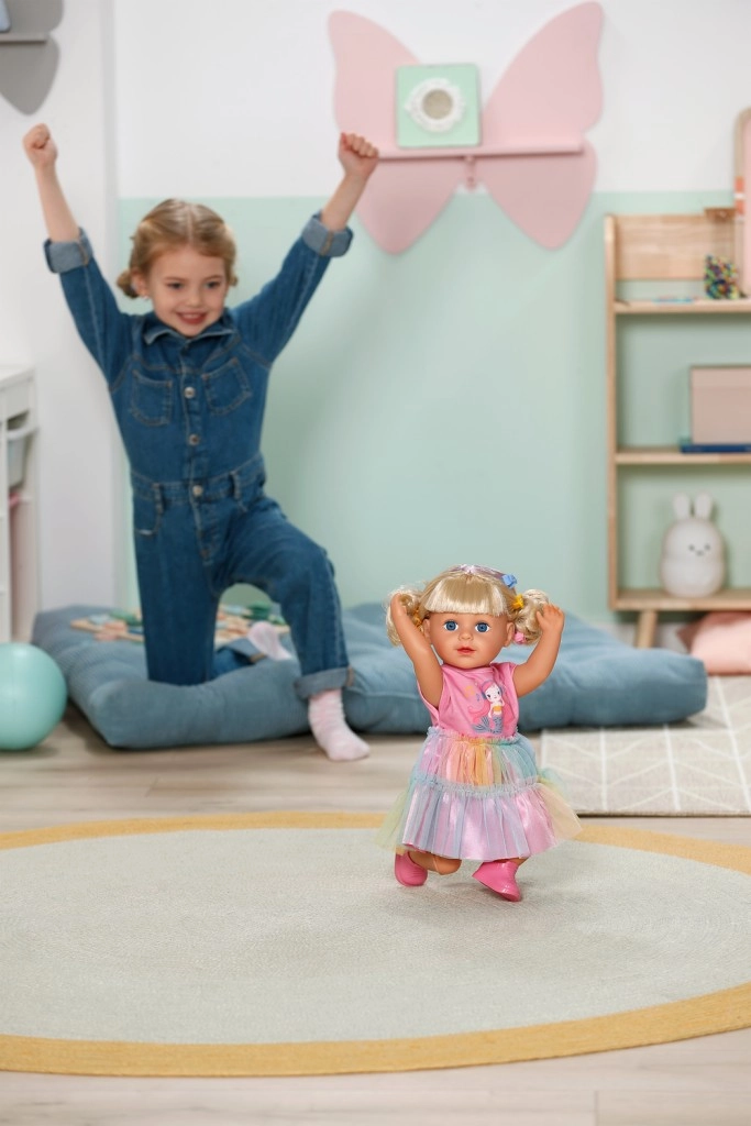 Carla vilki mielus marškinėlius su spauda, vaivorykštinį tiulinį sijoną ir stilingus batelius. Tvirtas korpusas tinkamas ir vandeniui, tad galėsite linksmintis maudynėse vonioje. Puiki kokybė ir patvarios medžiagos pradžiugins tiek vaikus, tiek tėvus.