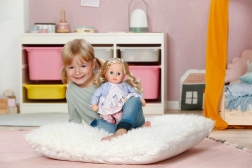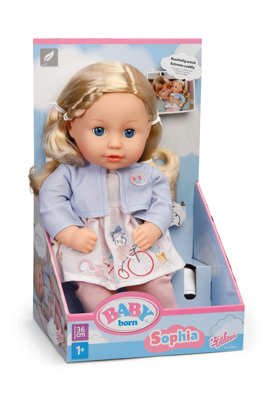 Susipažinkite su Sofija – švelnia kasdienio žaidimo drauge. Lėlė BABY born Sophia rožiniu aprangu žavi minkštu kūneliu, idealiu glaustynėms, realistiškomis mirksinčiomis akimis ir vešliais, kokybiškais plaukais, kurie tiesiog kviečia šukuoti ir kurti šukuosenas.