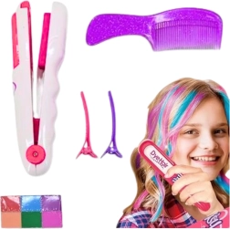 Šis kūrybinis rinkinys puikiai tinka vaikams, kurie mėgsta stiliaus pokyčius ir nori susikurti savo originalias šukuosenas. Naudojant spalvų aplikavimo lygintuvą ir ryškias kreideles, akimirksniu atsiras įspūdingi daugiaspalviai sruogų akcentai, kurie lengvai nusiplauna vandeniu, tad galite eksperimentuoti vėl ir vėl.