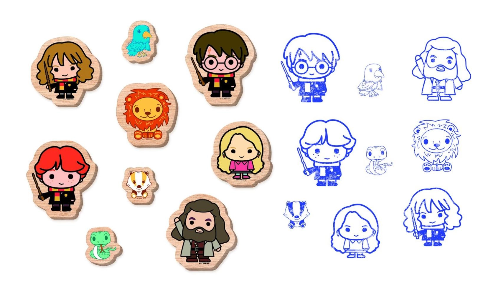 Su šiuo HARRY POTTER medinių antspaudų rinkiniu vaikai ir suaugusieji lengvai sukurs originalius piešinėlius, atvirukus ir dekoracijas. Dėl tvirtų medinių laikiklių antspaudus patogu laikyti, o mėlyna pagalvėlė užtikrina švarų ir ryškų atspaudą. Puiki dovanos idėja magiško pasaulio gerbėjams.