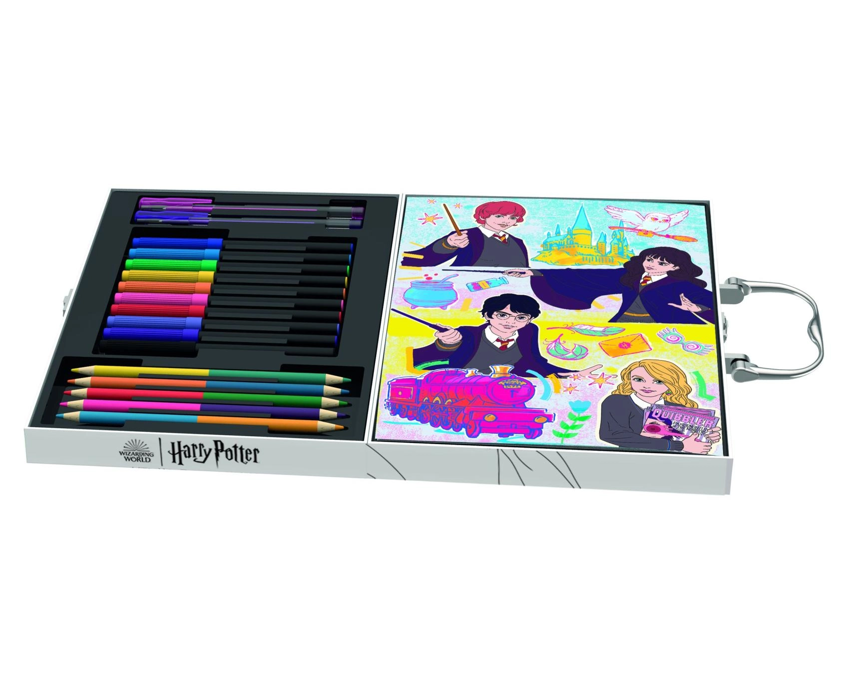 Atsiskleiskite kūrybos magiją su kūrybiniu lagaminėliu Harry Potter. Kompaktiška, nešiojama rinkinė siūlo flomasterius, dvipuses spalvotas pieštukus, gelinius rašiklius ir flomasterius, piešimo sąsiuvinį ir lipdukus. Išorinę lagaminėlio pusę galima nuspalvinti, tad vaikai susikurs savo originalų dizainą. Puikiai tinka kelionėms, kūrybai namuose ir kaip dovana mažiesiems Būrų pasaulio gerbėjams. Tinka vaikams nuo 3 metų.