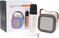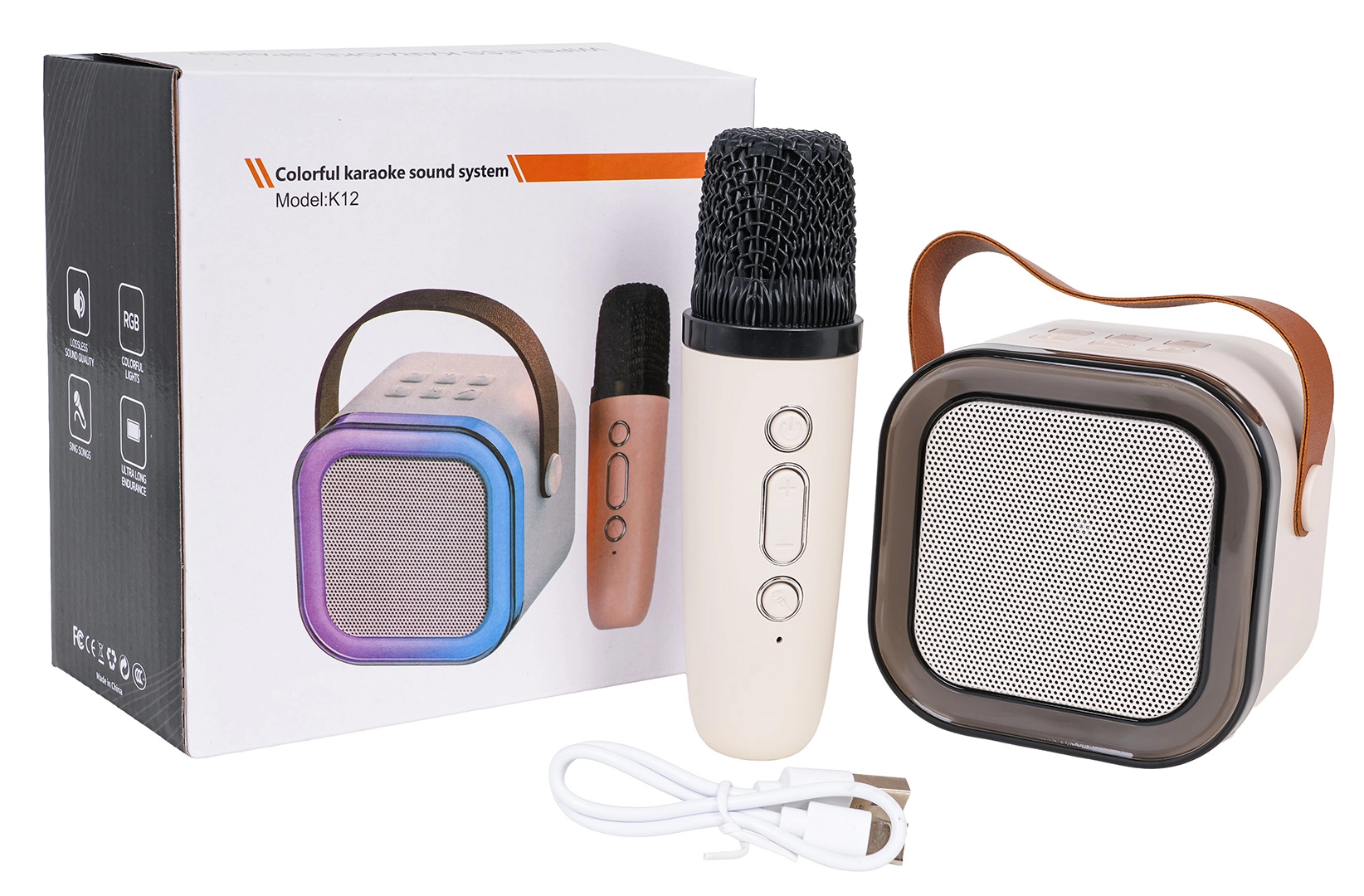 Kompaktiškas karaokės rinkinys vaikams nuo 3 metų ir suaugusiesiems sujungia belaidį mikrofoną ir galingą mini garsiakalbį su švariu ir garsu garsu, RGB apšvietimu ir stabiliu Bluetooth 5.0. Dėl DSP triukšmo mažinimo, palaikymo MP3/WMA/WAV ir įėjimų, įskaitant TF kortelę bei USB‑C, tai idealus pasirinkimas dainavimui, pranešimams ir pramogoms kelyje.