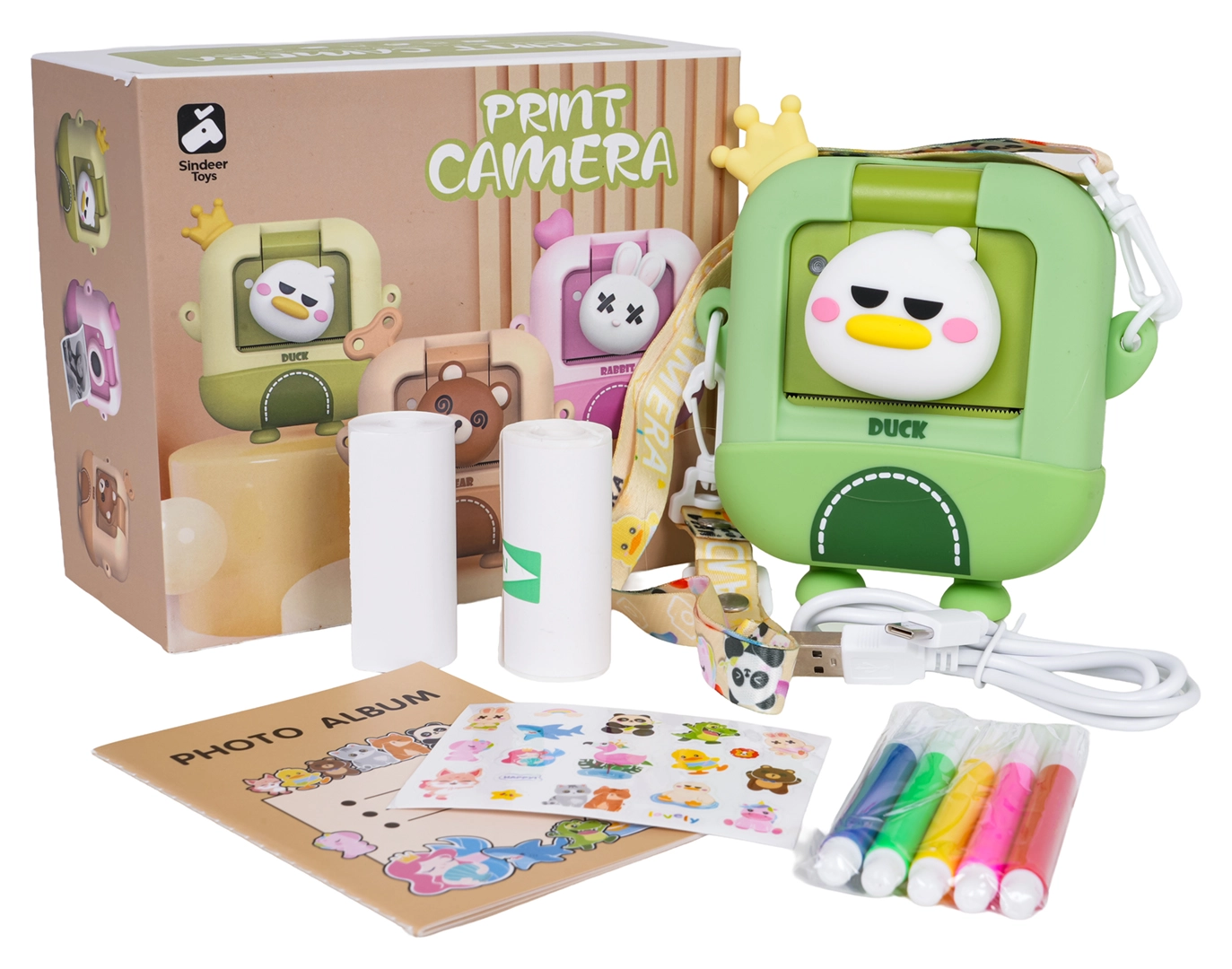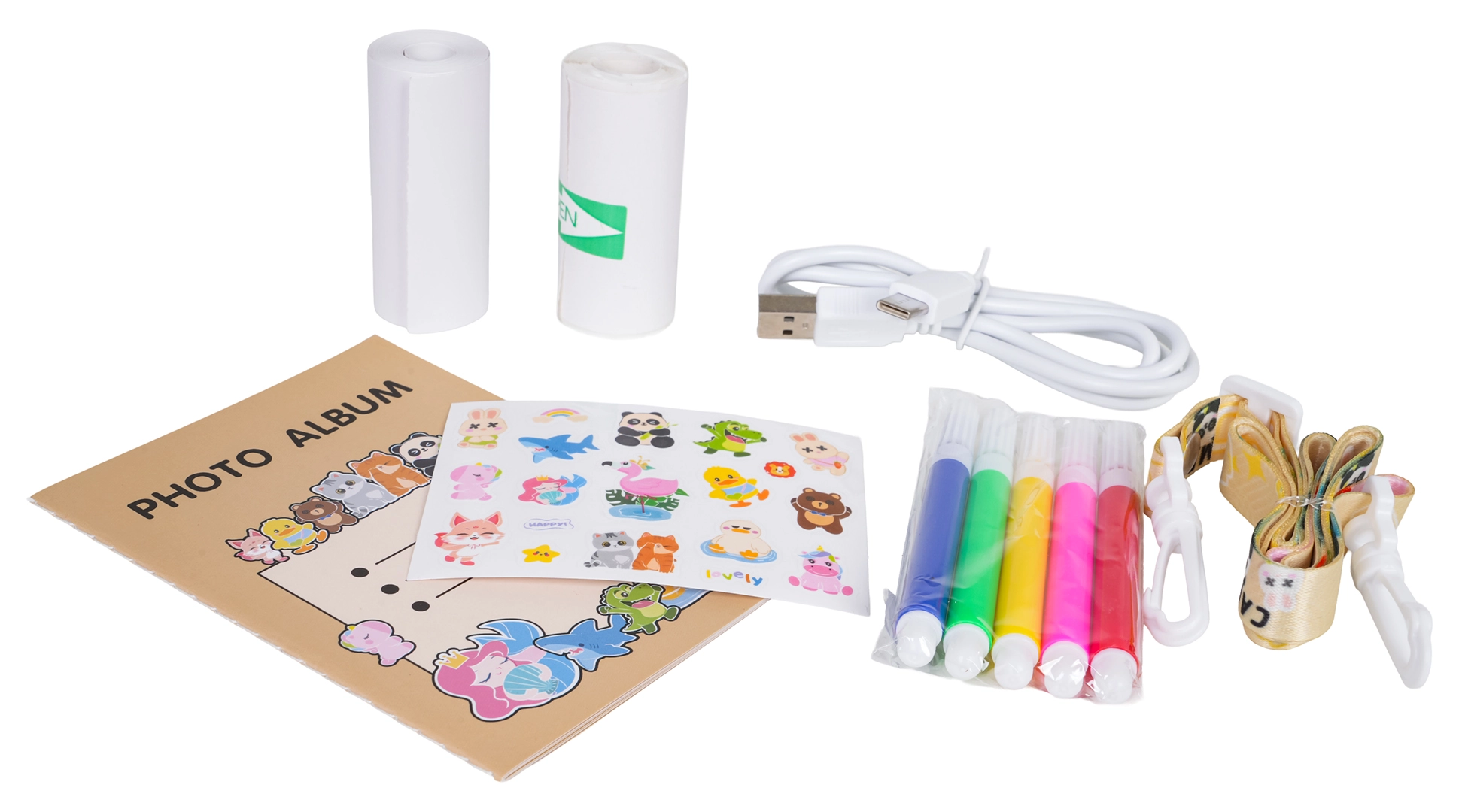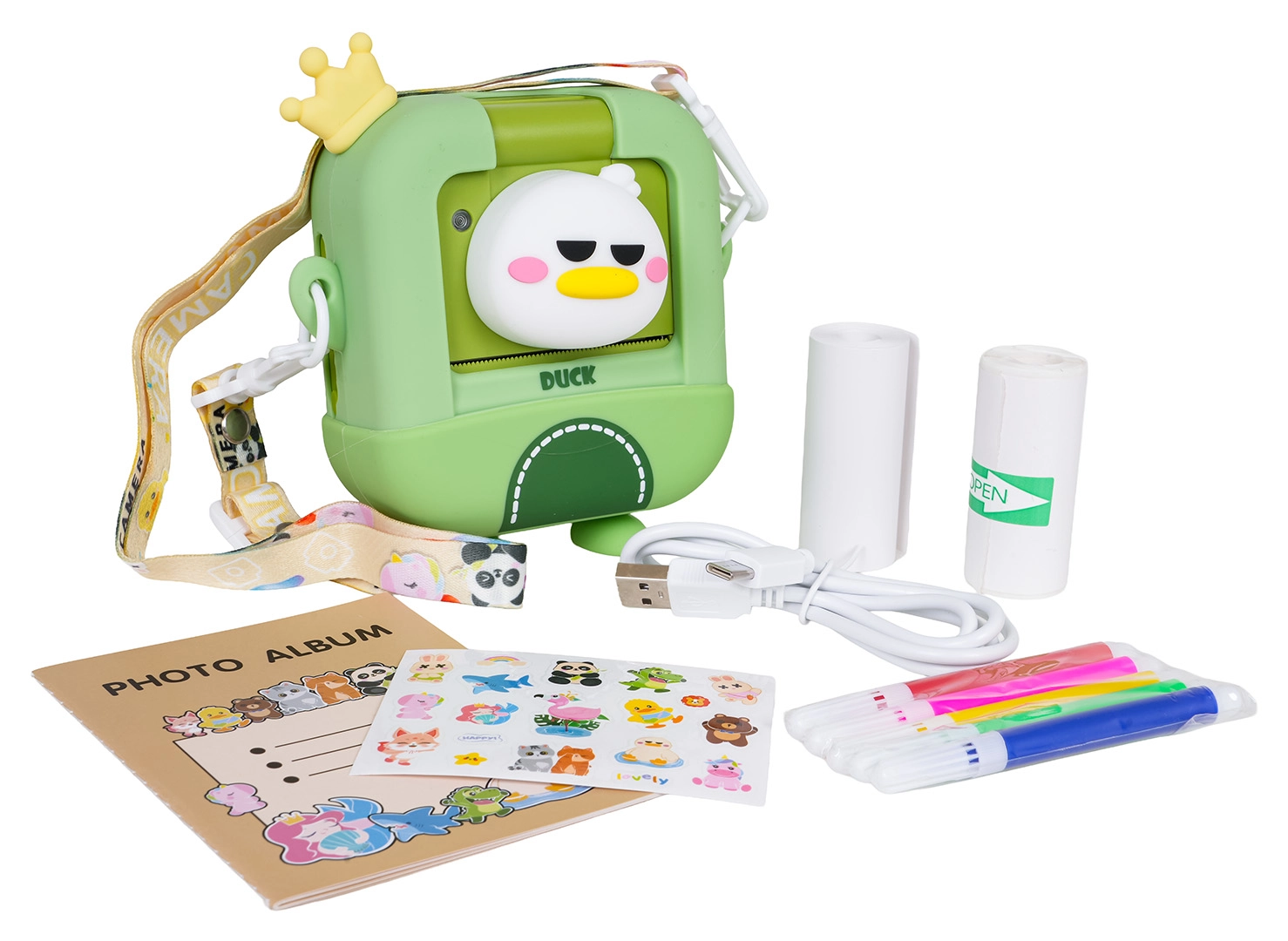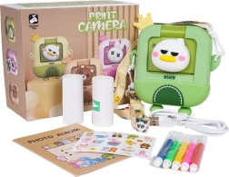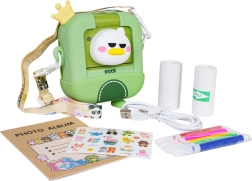 Pradžiuginkite mažus fotografus vaikišku fotoaparatu, kuris iškart po nuspaudimo spausdina nuotrauką ant termopopieriaus. Rinkinyje yra gausu kūrybinių priedų: apsauginis dėklas, 2 termopopieriaus ritinėliai, USB kabelis, dirželis, fotoalbumas, lipdukai ir spalvoti flomasteriai, kad būtų galima išspausdintas juodai baltas nuotraukas nuspalvinti. Fotoaparatas siūlo vaizdo įrašymą, smagius efektus ir saugojimą į kortelę (kortelės lizdas), todėl tai puiki dovana vaikams nuo 3 metų.
