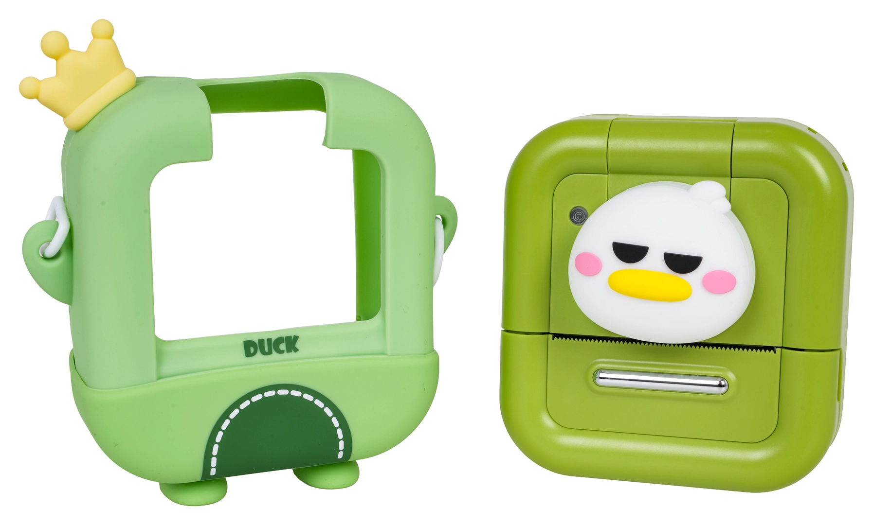 Vaikiškas momentinis fotoaparatas su ančiuko motyvu sujungia paprastą valdymą, momentinį juodai baltą spausdinimą ir kūrybišką veiklą. Kompaktiškas korpusas su dirželiu puikiai tinka kelionėms, o apsauginis dėklas užtikrina saugų nešiojimą. Rinkinyje rasite viską, ko vaikams reikia savo fotoknygelei – nuo termopopieriaus ir flomasterių iki albumo ir lipdukų.