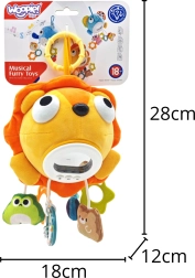 Mielas pliušinis liūtas iš Woopie – idealus draugas miegui ir žaidimams. Jis derina švelnią muziką, raminančias švieseles ir įvairias tekstūras, kurios stimuliuoja pojūčius ir suteikia saugumo jausmą. Dėl 6 pakabukų, įskaitant kramtuką ir barškutį, lavinama motorika ir sensorika, o praktiškas laikiklis leidžia lengvai pakabinti prie lovytės, vežimėlio ar automobilinės kėdutės.