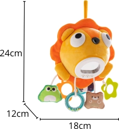 Ant liūto kūno rasite 3 valdymo mygtukus, skirtus apšvietimui įjungti arba išjungti, melodijoms perjungti ir garsumui reguliuoti. Komplekte yra pakabinami elementai įvairių formų – įskaitant kramtuką ir barškutį – taip pat veidrodėlis, skatinantis tyrinėti ir lavinti akių-rankų koordinaciją.
