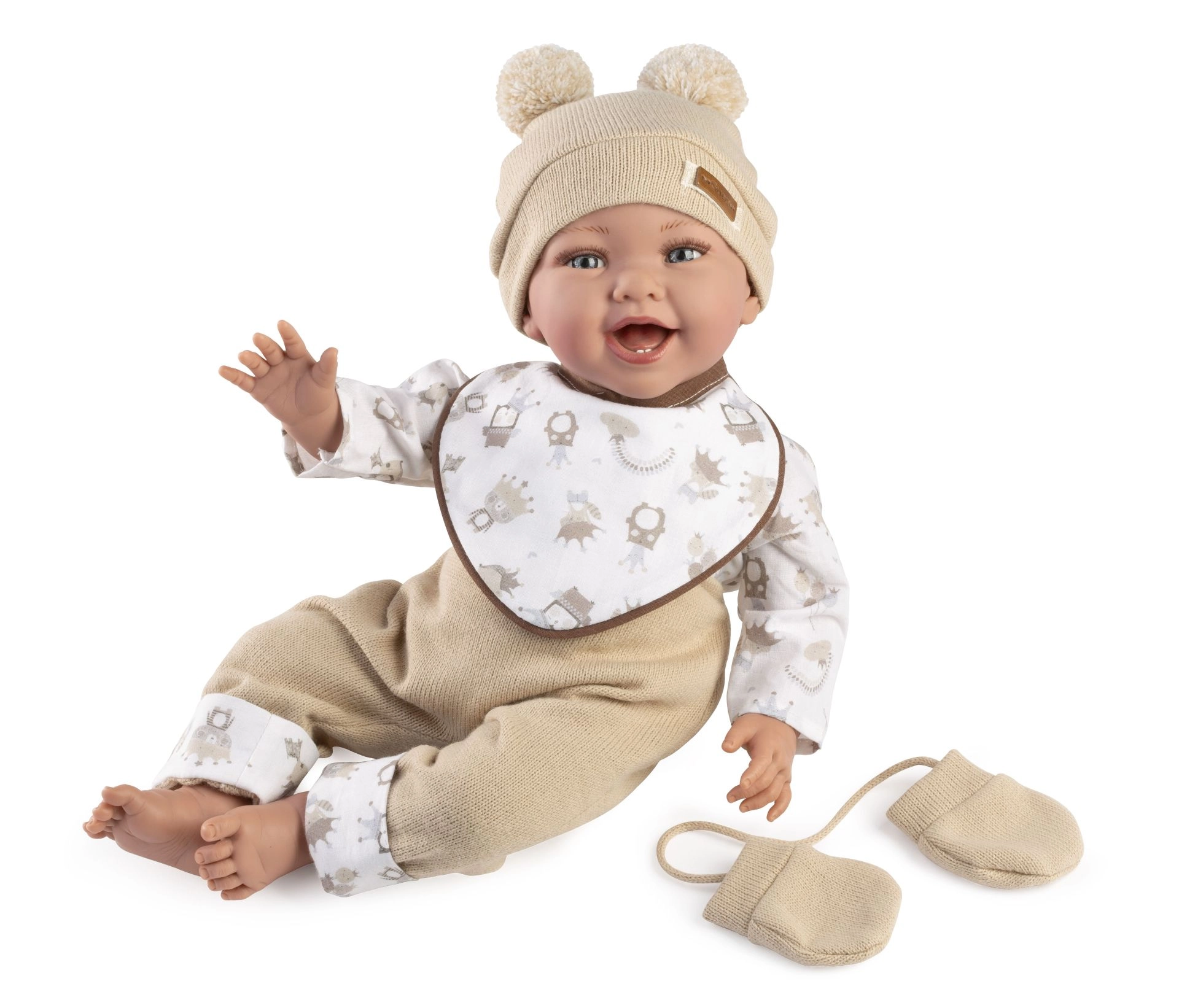 Žavinga realistiška lėlytė OLIVER, 42 cm dydžio, išsiskiria minkštu tekstiliniu kūneliu, reguliuojamomis galūnėmis ir galimybe savarankiškai sėdėti. Ji rankų darbo, pagaminta Ispanijoje, pateikiama dovaninėje dėžutėje ir idealiai tinka rūpinimosi įgūdžių lavinimui bei smulkiajai motorikai vaikams nuo 3 metų.