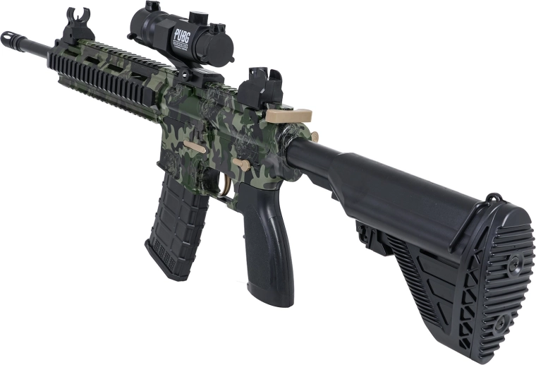 Didelis gelinis blasteris M416 smagiems mūšiams su 7–8 mm vandens kamuoliukais suteikia veiksmo namuose ir lauke. Siūlo rankinį ir automatinį šaudymo režimą, reguliuojamą taikiklį tikslesniam nusitaikymui ir maitinimą 7,4 V akumuliatoriumi su USB įkrovimu. Pakuotėje rasite viską, ko reikia, įskaitant apsauginius akinius, slopintuvą, dėtuvę, diržą ir 500 vnt. gelinių kamuoliukų paruošimui.