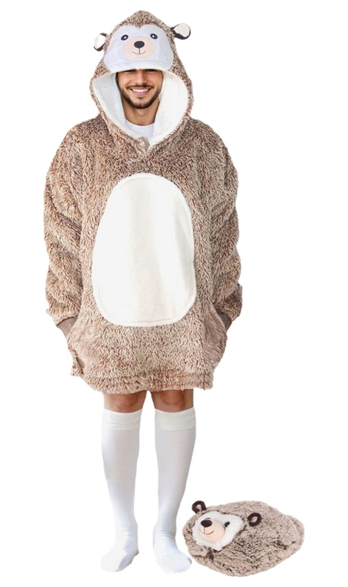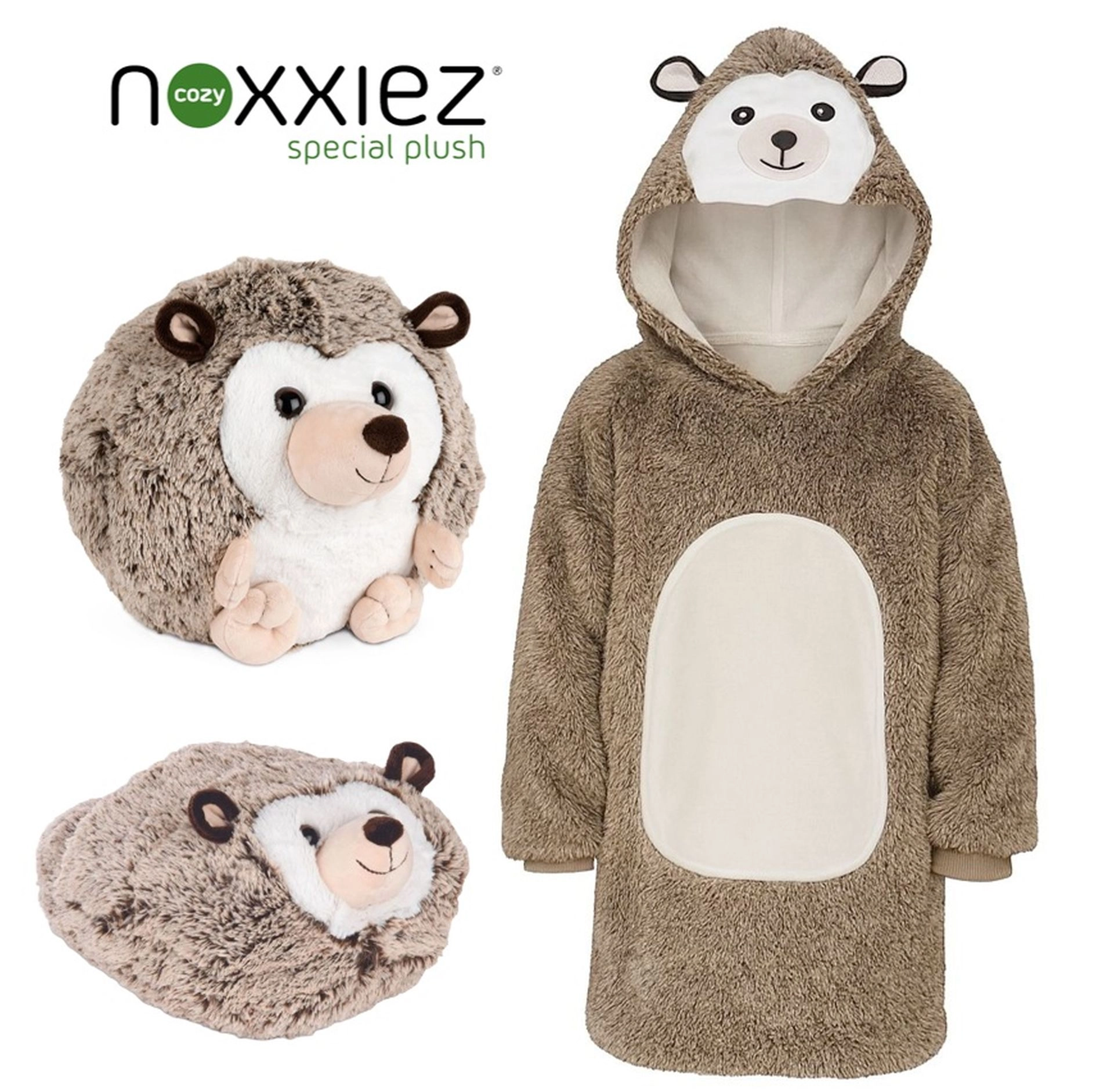 Apsisiauskite maksimaliu jaukumu su šilta COZY NOXXIEZ megztinio antklode mielu ežio motyvu. Ji sujungia laisvą gobtuvinį megztinį ir švelnią antklodę viename, suteikia ypatingą šilumą, minkštumą ir judėjimo laisvę namuose ir lauke. Turi didelį gobtuvą su gyvūno motyvu ir erdvią priekinę kišenę rankoms sušildyti.
