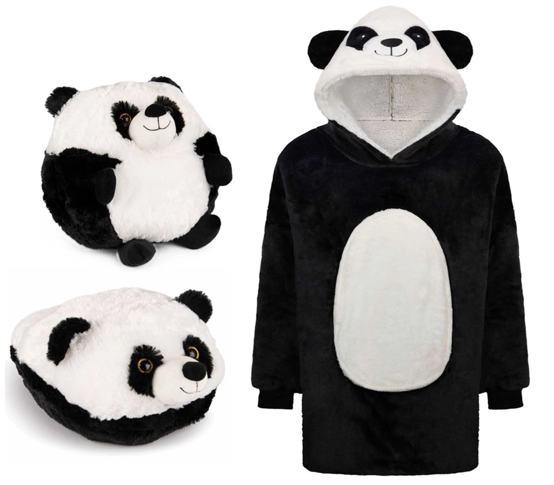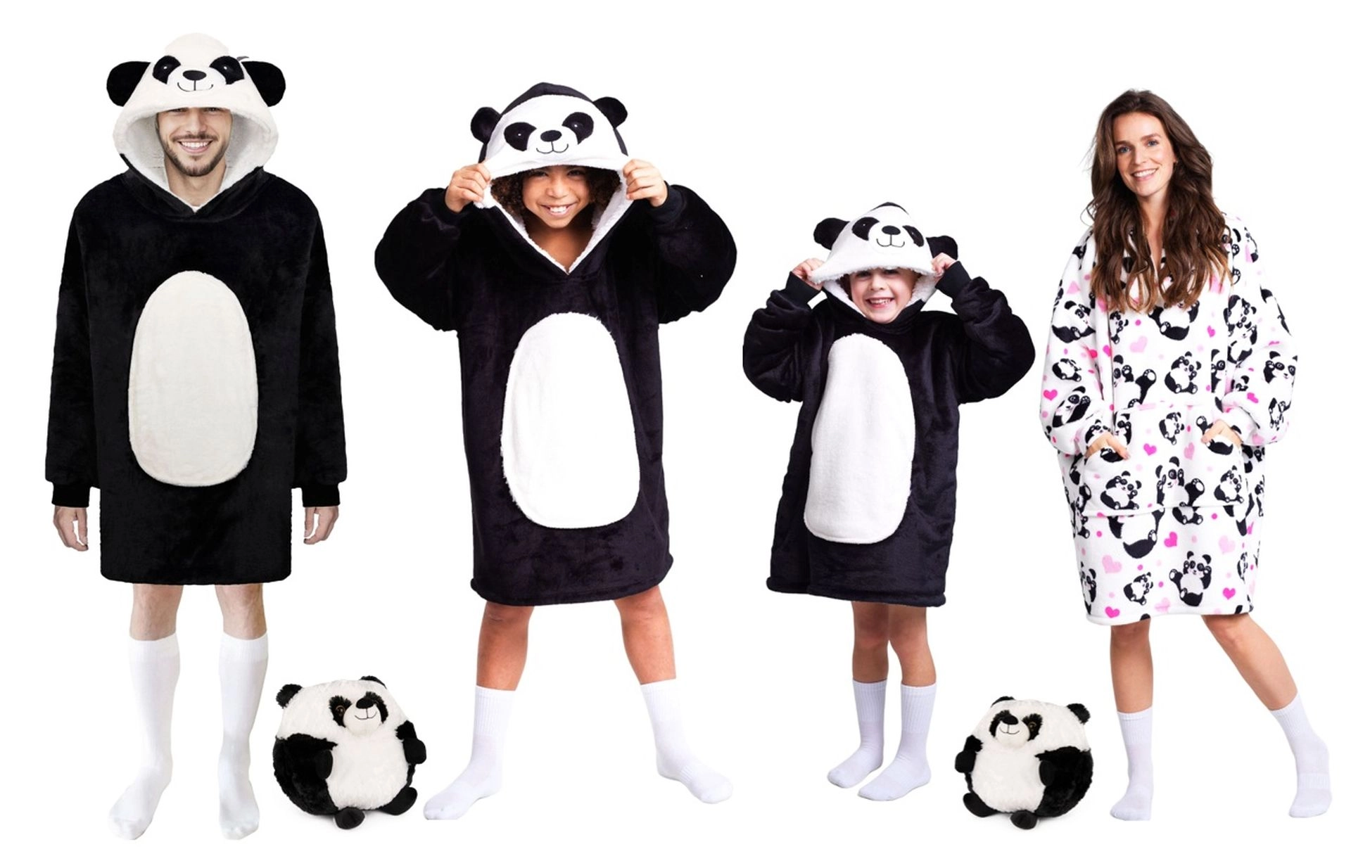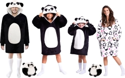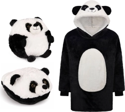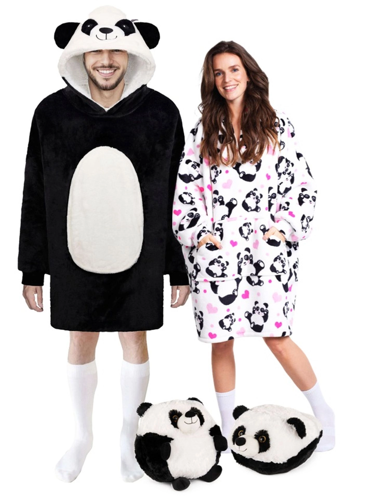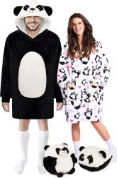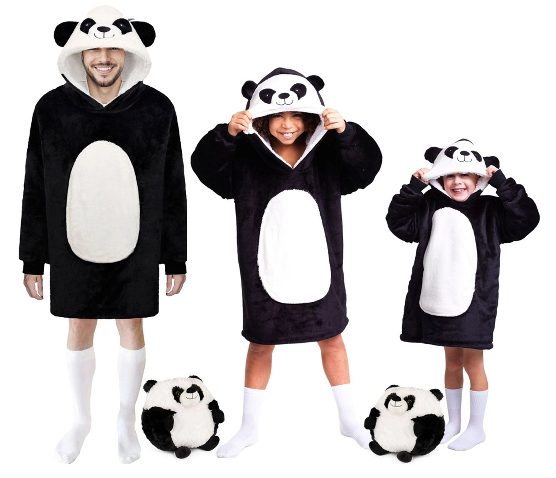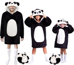 Mėgaukitės šiluma ir komfortu bet kada ir bet kur. Ši oversize džemperio tipo antklodė su žavingu pandos dizainu puikiai sušildys prie televizoriaus, skaitant, dirbant kompiuteriu ar ilsintis sode. Vidų sudaro purus šerpos flisas, išorę – aksomiškai švelnus flanelis – derinys, kuris suteikia akimirksninę šilumą ir maksimalų minkštumą.