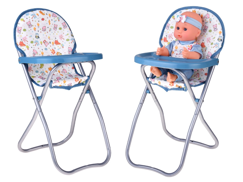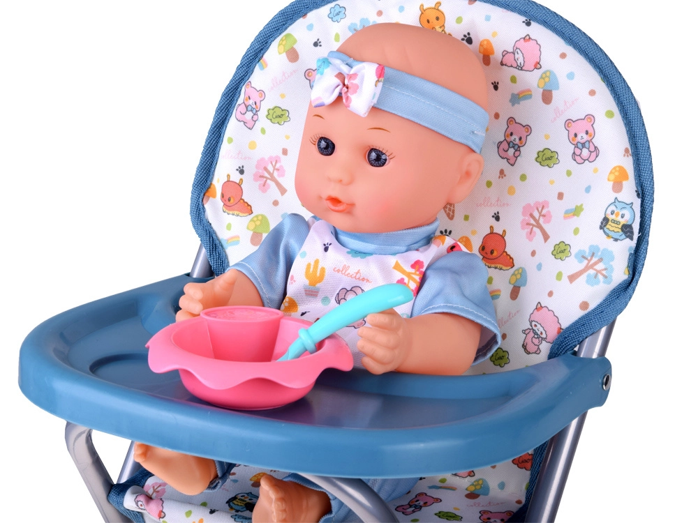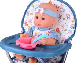Stabili sulankstoma kėdutė su padėklu ir vieta dubenėliui bei stalo įrankiams. Skatina realistišką maitinimo ir valgymo žaidimą su lėlyte.