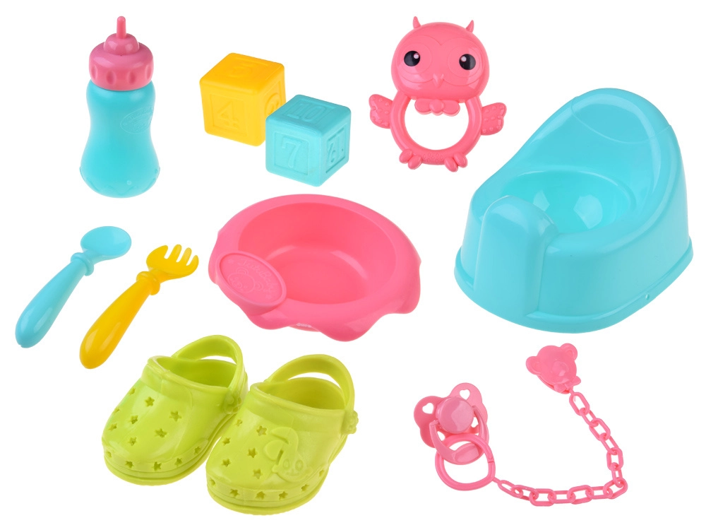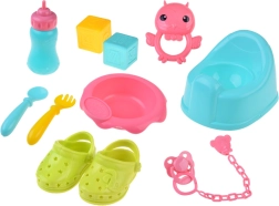 Praktiška įranga apima maitinimo rinkinį (dubenėlį, stalo įrankius ir buteliuką), naktipuodį, čiulptuką su grandinėle, spalvotas kaladėles ir barškutį. Kelioninė lovytė su kvėpuojančiomis tinklelinėmis sienelėmis ir krepšiu idealiai tinka žaidimams ir laikymui. Dėl gausios komplektacijos vaikai lengvai mėgdžioja tikrą kūdikio priežiūrą ir lavina bendravimą bei smulkiąją motoriką.