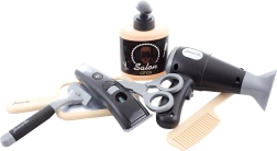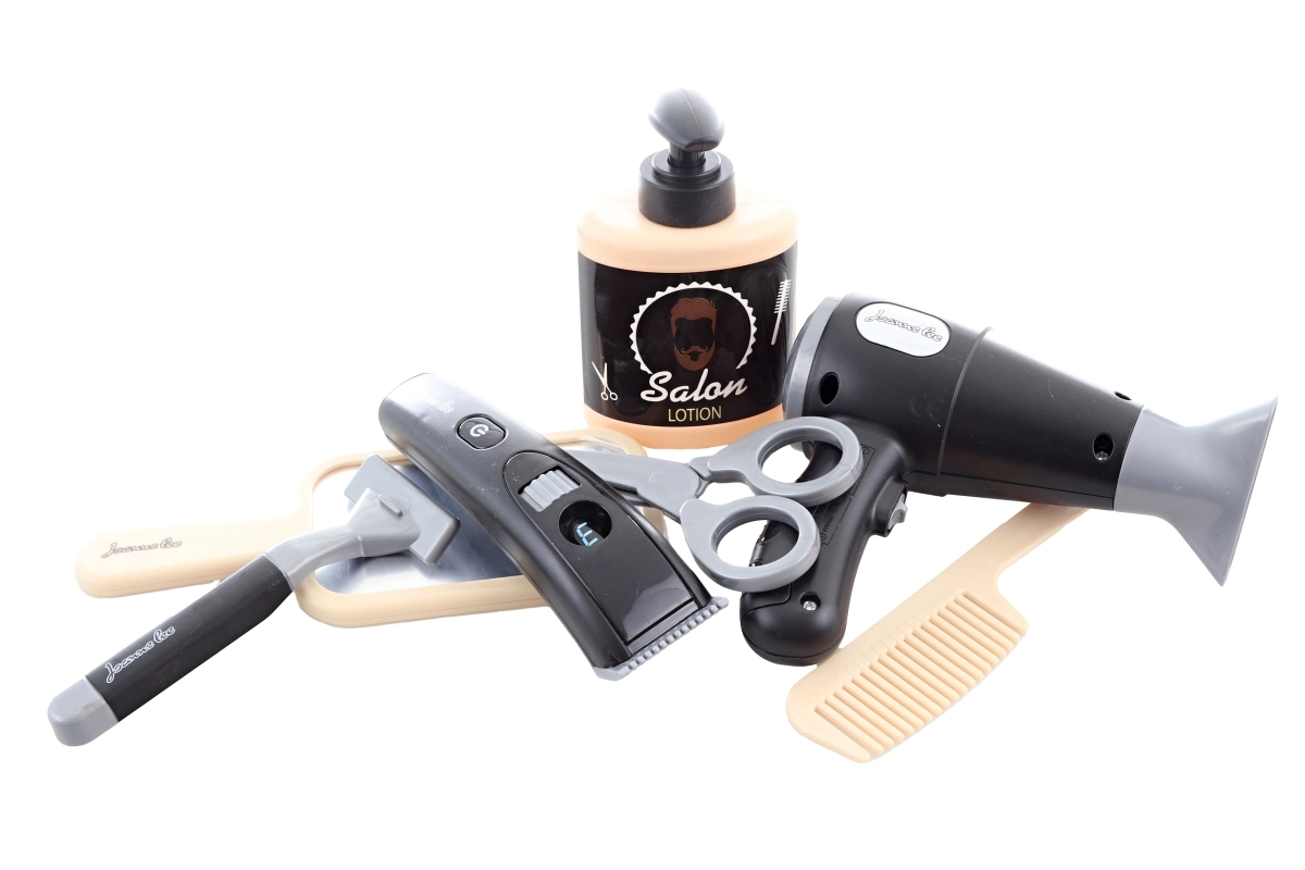Suteikite vaikams tikro kirpyklos salono patirtį. Šiame rinkinyje yra patogus medžiaginis diržas tvarkingam įrankių laikymui, gausūs priedai ir baterijomis maitinamas fenas, kuris įjungus šviečia ir skleidžia garsą, taip sustiprindamas tikro darbo salone pojūtį.