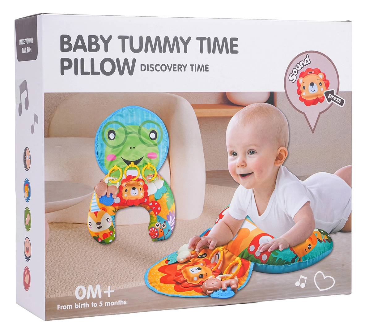 Ši daugiafunkcė sensorinė pagalvė patiems mažiausiems idealiai tinka kasdieniams žaidimams ir poilsiui. Atliekant pratimus ant pilvuko ji suteikia stabilią atramą, padedančią stiprinti kaklo ir nugaros raumenis. Sėdintiems vaikams veikia kaip minkštas padas, o vėliau – kaip patogus galvos volelis automobilinei kėdutei ar vežimėliui.